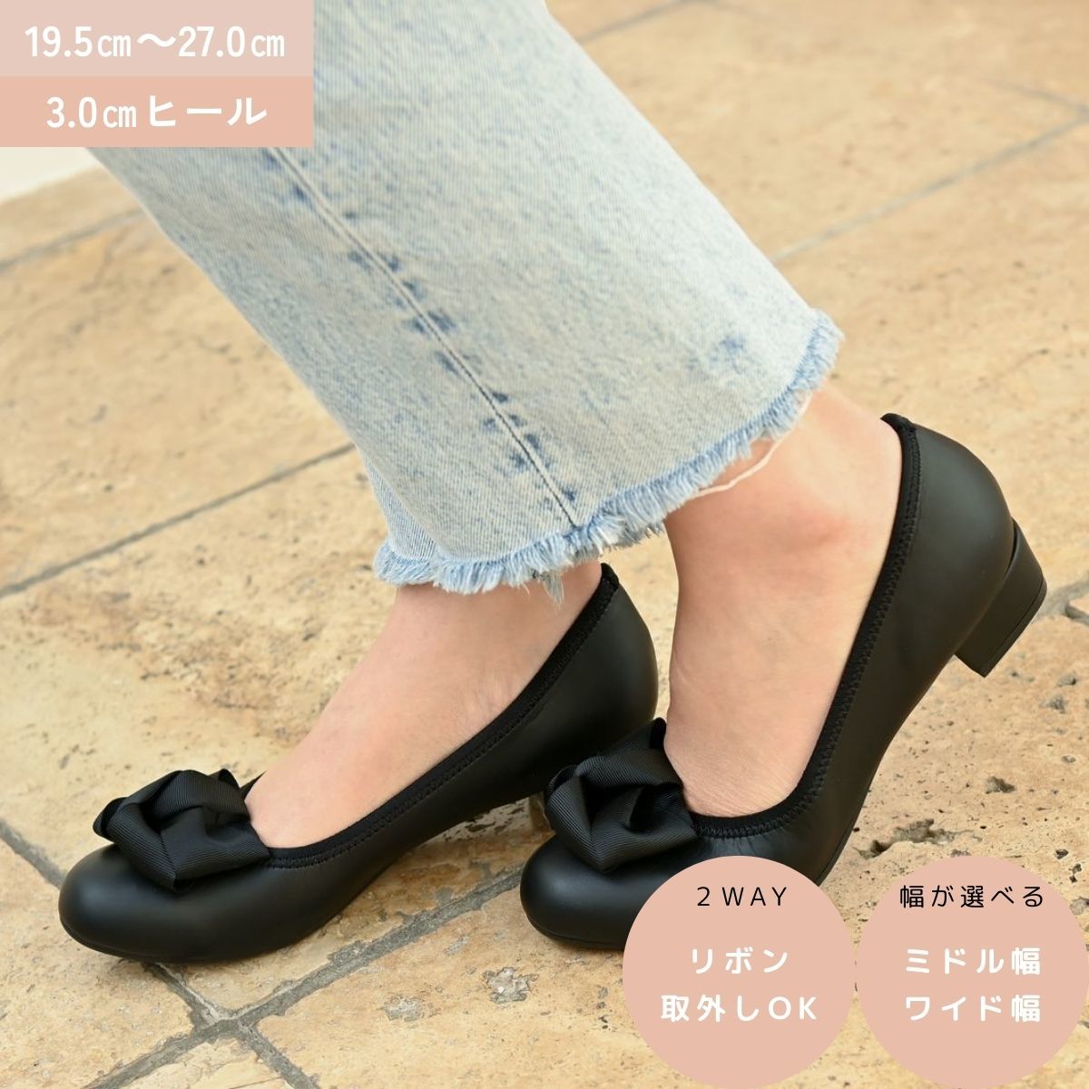 ゆったり幅もある2wayパンプス(3.0cmヒール)[19.5~27cm]ラクチンきれいシューズ/velikoko(ヴェリココ)(velikoko)