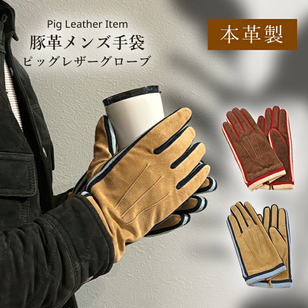 スエード ピッグレザー 豚革 グローブ 薄手 手袋 メンズ 防寒 本革 人...