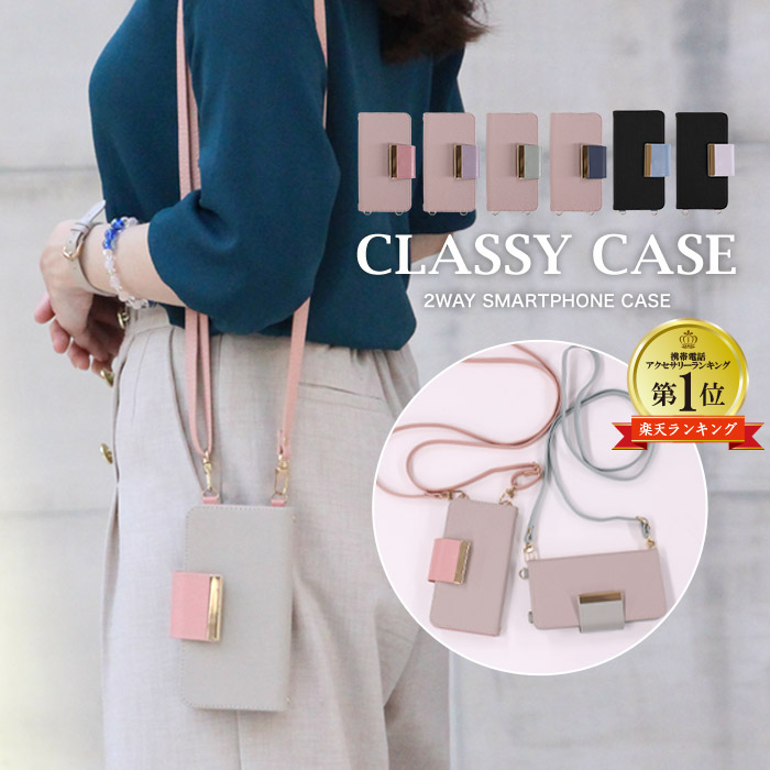 全機種対応 ClassyCase楽天ランキング第1位を獲得した人気のClassyCase。上品なバイカラーデザインとゴールドパーツが映える、縦横どちらでも使える2WAY仕様です。