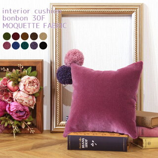耐久性の高いモケット生地を使用したクッション。厚手で肌触りは滑らかです。すこし大きめで枕がわりにもなるサイズ感。