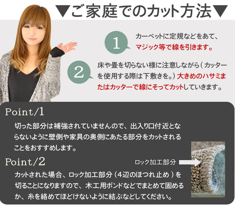 カーペット・ラグは織物である為、多少の誤差や伸縮が発生することがございますので予めご了承下さい。