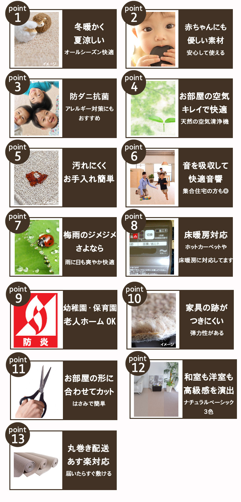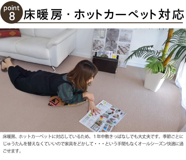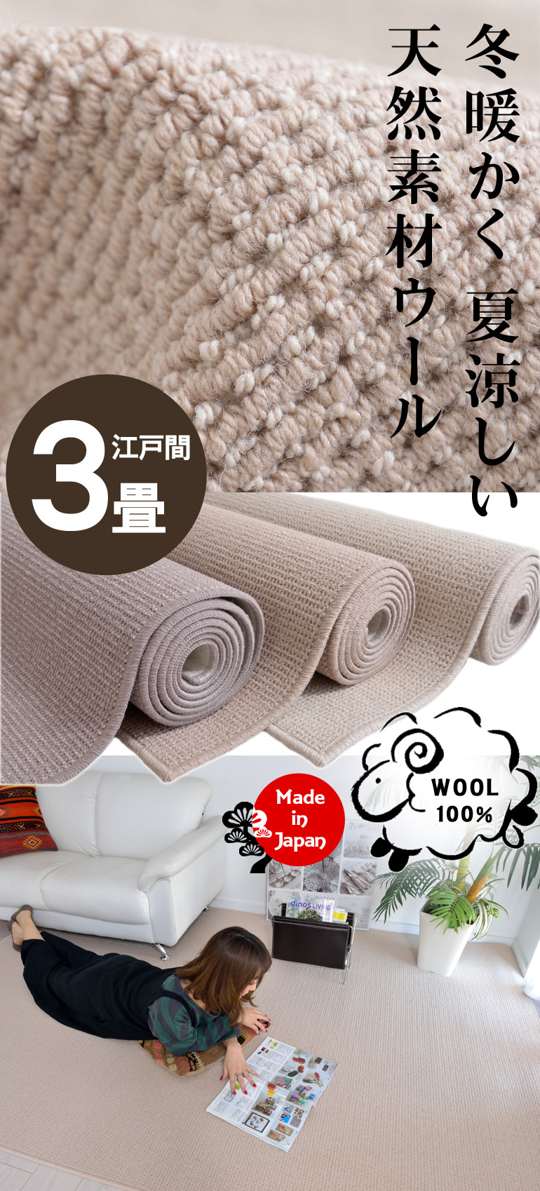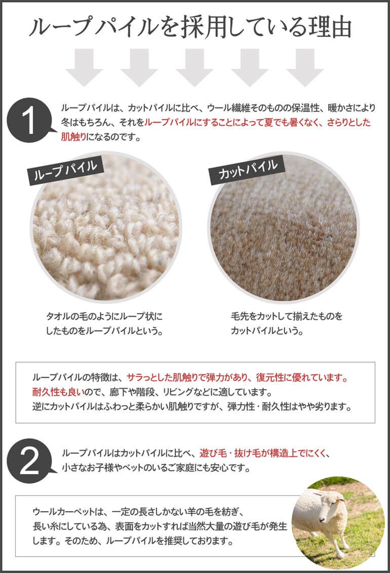 ウール・防炎・防ダニ・ホットカーペット、床暖房対応・自分でカットできる・ロールタイプ(シワが残らない丸まきでお届け)