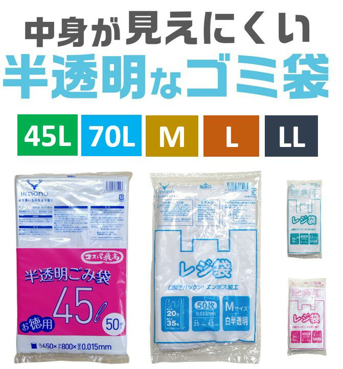 【予約販売】ゴミ袋 半透明 乳白 45L 50枚入 厚さ0.015mm 70L 20枚入り 厚さ0.02mm 伸びやすく裂けにくい 省…