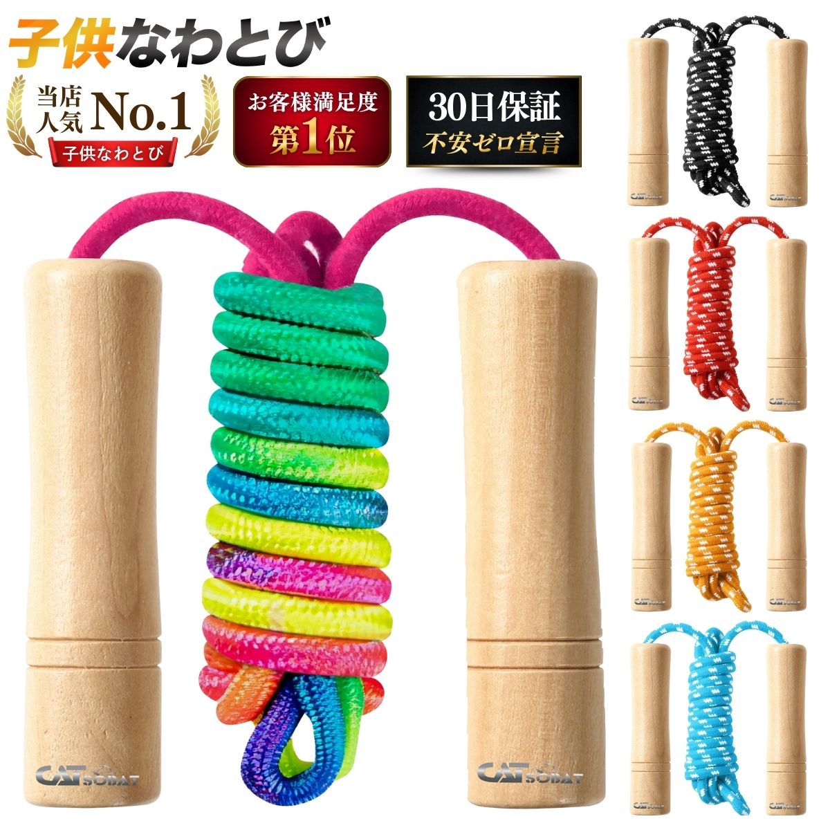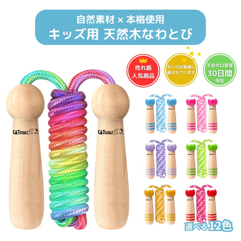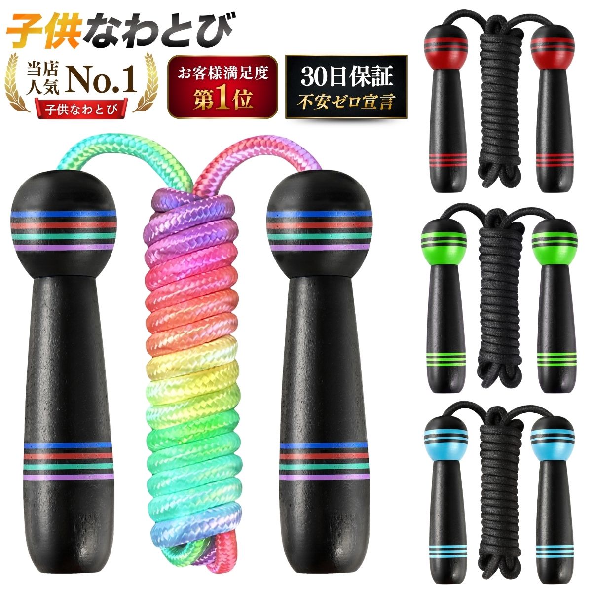子供用 縄跳び 幼児 小学生用 天然木グリップ 長さ調整可 軽量 運動会 トレーニング用【メーカー30日保証付き】