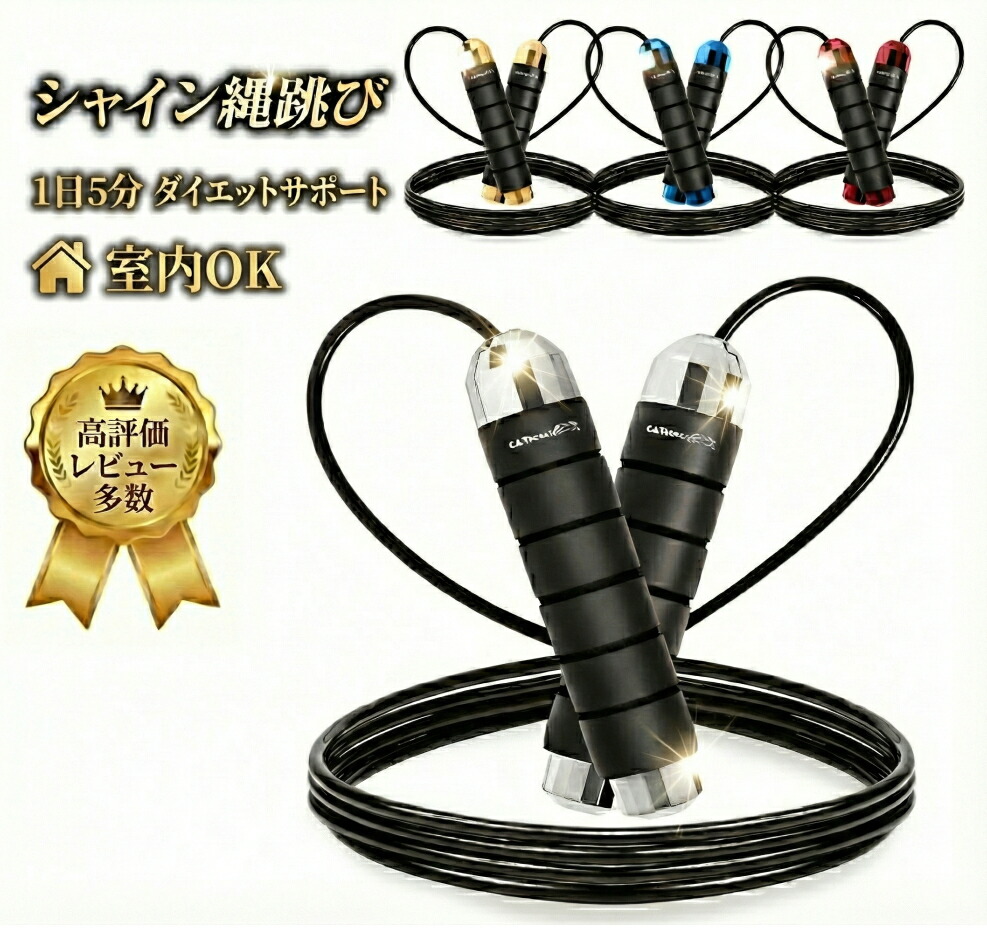 【累計販売数10万本突破】シャイン縄跳び 限定色 長さ調整 大人用 子供用 ワイヤーロープ 軽量 【メーカー30日保証付き】