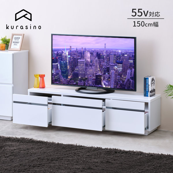 清潔感のある爽やかテイスト シンプルながらもお部屋に明るさと清潔感を与えてくれる、白いテレビボード。艶やかな光沢が美しい、鏡面塗装を施した商品もあります。