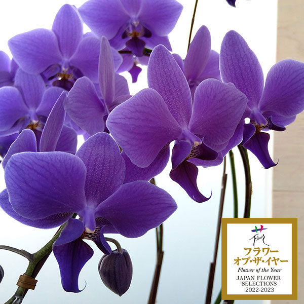 ファレノプシス:Blue Gene(ブルージーン)(R)5本立ち7.5号鉢植えラッピング(受皿付)