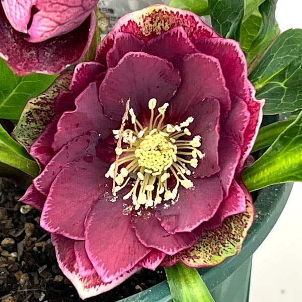松村ナーセリーさんのクリスマスローズ:26-53ダブルラブリーピンク ブロッチ/4号ロングポット【現品販売】