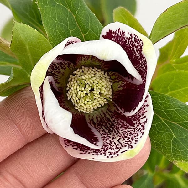 松村ナーセリーさんのクリスマスローズ:26-90シングル ホワイトブロッチ/5号ポット【現品販売】