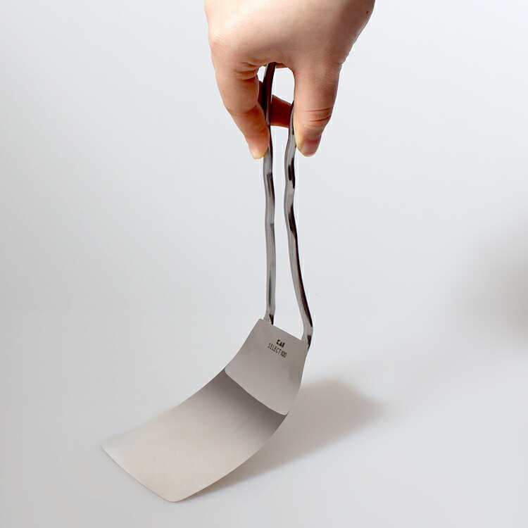 餃子や目玉焼きなどのお料理に活躍するしなやかなターナー。とても薄くて食材とフライパンの間をうまく滑り込んでくれます。食材がフライパンにくっつきそうなときも、これでカリカリと焼き目をはがしていくとうまくフライパンからはがれてくれたりします。