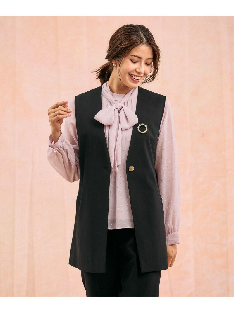 GLOBAL WORKストレッチベスト*ブラウス*パンツセット/581026