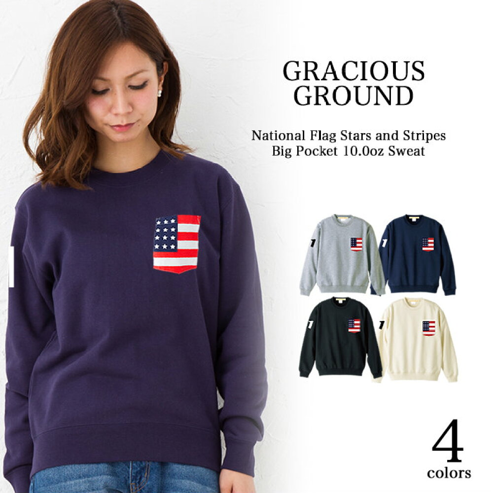 星条旗 トレーナー プリント ポケット アメ...
