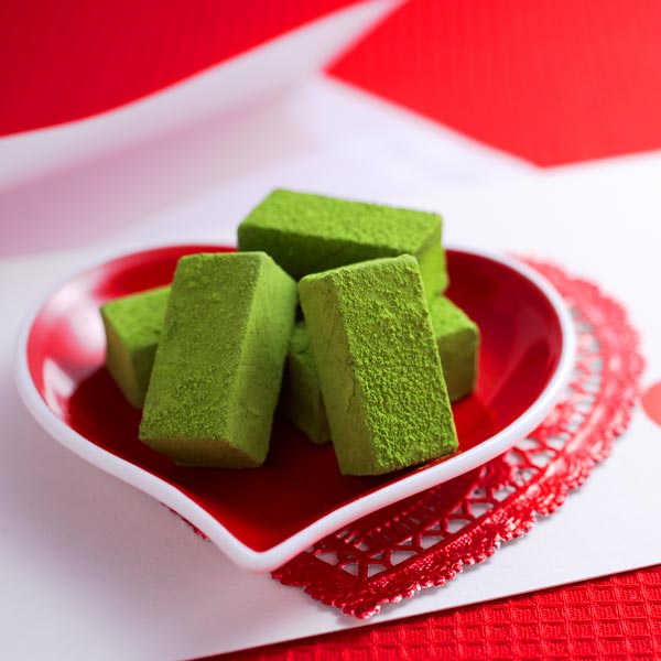 最初に挽きたて抹茶の鮮やかな緑とほろ苦さが、次に口の中でとろける生チョコの控えめな甘さが、そうしてふたたび、抹茶の香りが濃厚に広がる、ひと粒で抹茶の風味をぞんぶんに味わえる生チョコレートをつくりました。
