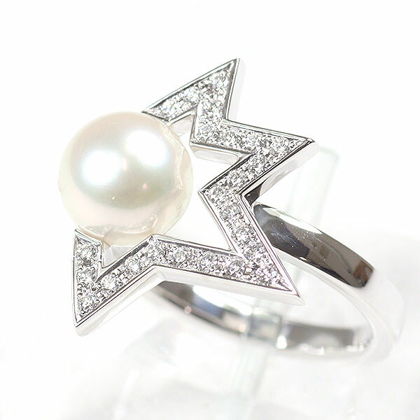 TASAKI タサキ コメット プラス ダイヤモンド パヴェ リング K18WG あこや真珠 12号 仕上げ済【中古】