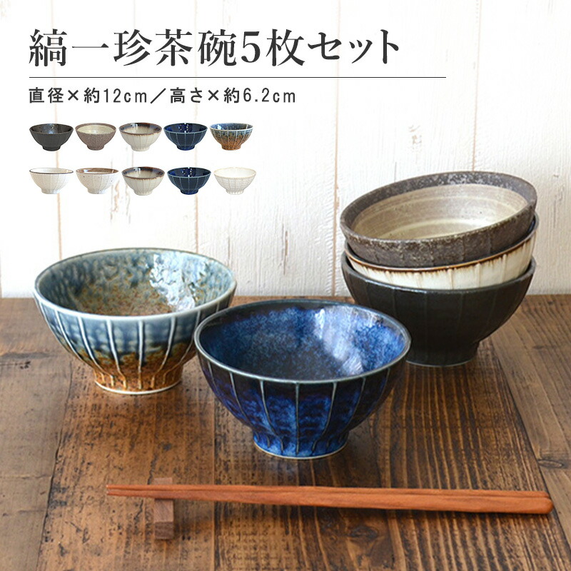 縞一珍飯碗色釉変わり5個セット
