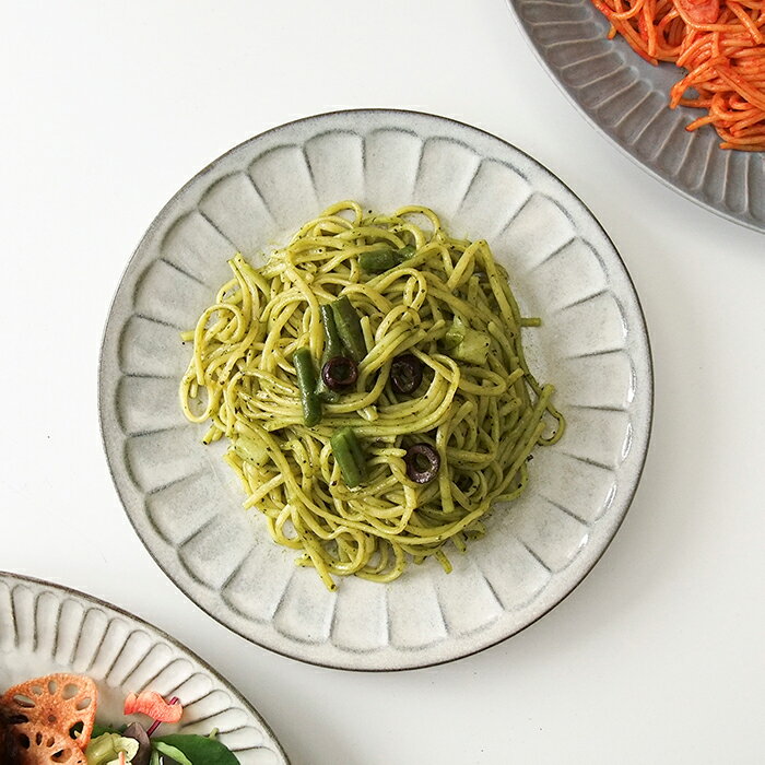 黒陶白釉 しのぎ 花 プレート 23cm おしゃれ カフェ食…