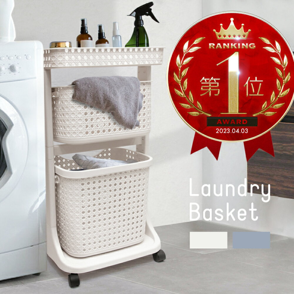 ランドリーバスケット 2段 キャスター付き ...