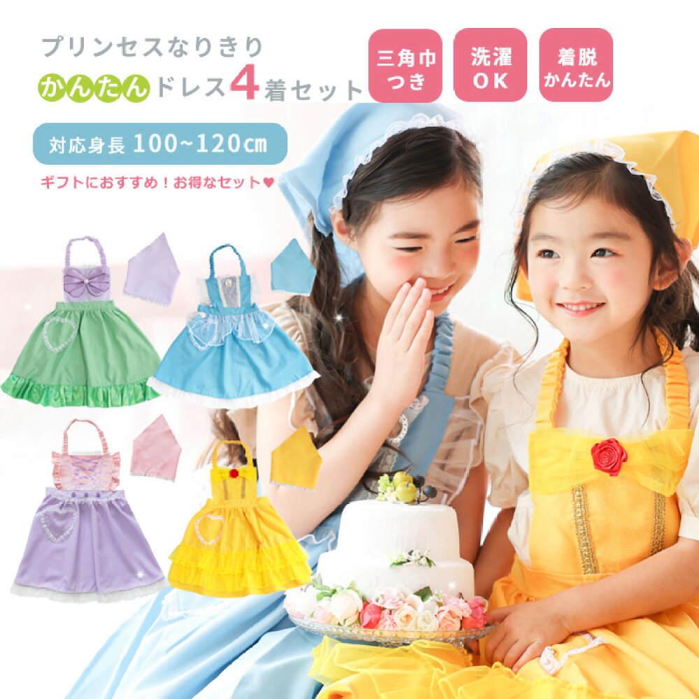 お得な4着セット プリンセスなりきり かんたんドレス エプロン 3角巾つき 【プリンセス コス...