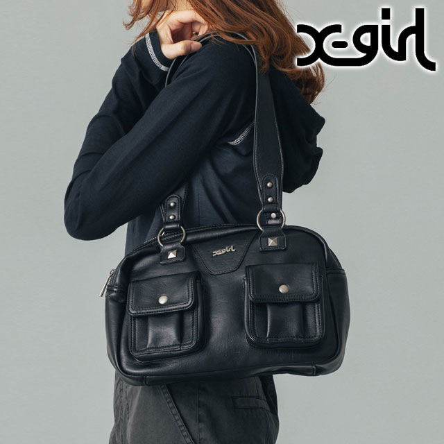 X-girl DOUBLE POCKET FAUX LEATHER HAND BAG BLACK [105251053011 SS25SPOT]