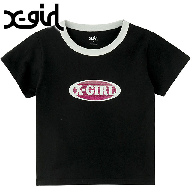 X-girl GRADATION GLITTER OVAL LOGO S/S BABY TEE BLACK ブラック 黒 [105252011012 SU25]