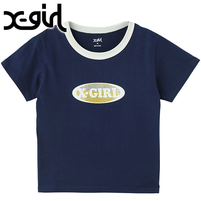 X-girl GRADATION GLITTER OVAL LOGO S/S BABY TEE NAVY ネイビー 紺 [105252011012 SU25]