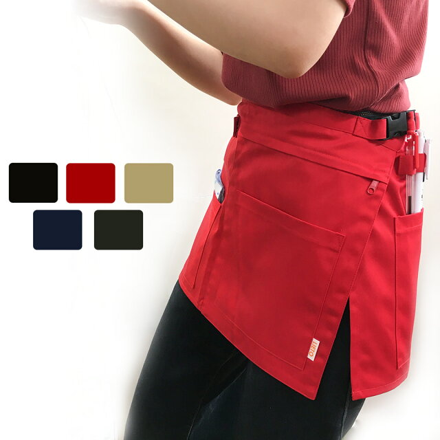 ポケットがたくさんついて収納力抜群。スリットも入って動きやすく、まさに働く人のためのエプロンです。