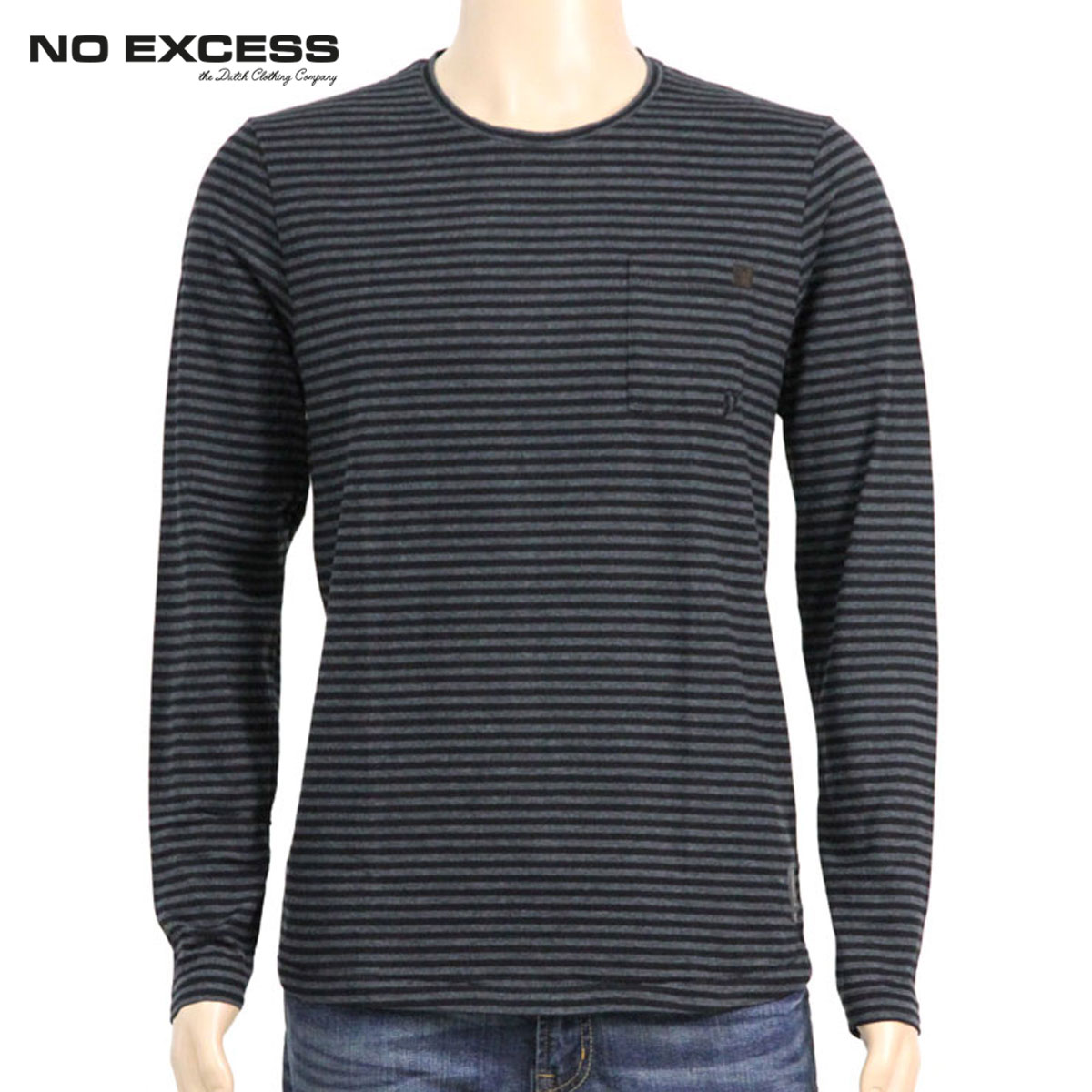 ノーエクセス ロンT メンズ 正規販売店 NO EXCESS 長袖Tシャツ PULLOVER R-NECK STRIPES KNIT 230823 23 dk grey D15S25