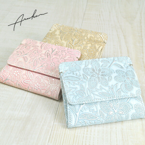 美しい陰影が目を惹く型押しのデザインに、手塗りで色を重ねた二つ折り財布☆コンパクトながら普段使いに必要なカードを収納できる!使い勝手の良さが魅力です♪