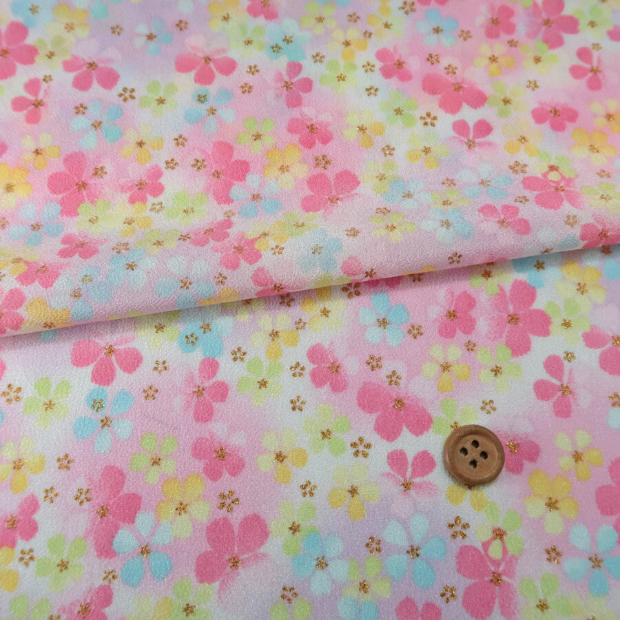 一越ちりめん生地 ふうわり花(ピンク) 10cm単位 切り売り