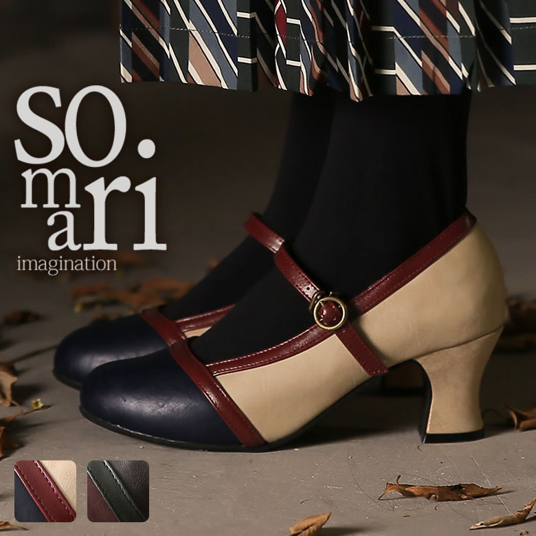 somariレトロ配色ストラップパンプス
