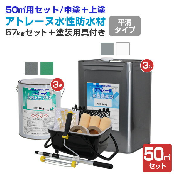 アトレーヌ水性防水材 50平米セット(57kgセット+塗装用具(大)付き)