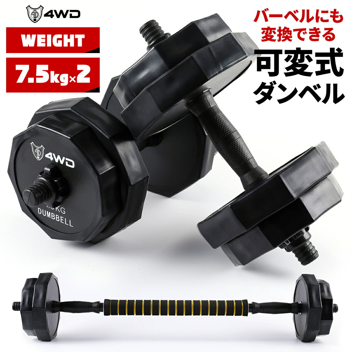 可変式ダンベル 7.5kg 2個セット バーベル