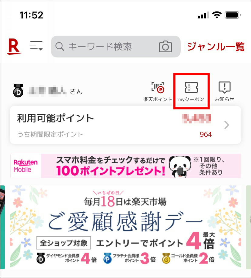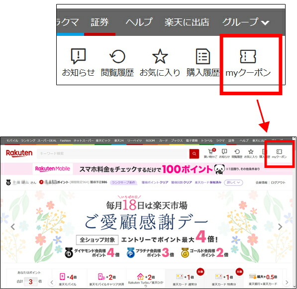 39クーポンは楽天市場のTOPページの上部にある「myク-ポン」の中にあります。