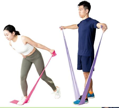 | フィットネス用バンド。全身あらゆるトレーニングに最適な帯状バンド。 | いつでも手軽に筋トレ。表面コーティングで、汚れを拭けます。 |