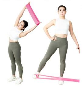 | 全身あらゆるトレーニングに最適な帯状バンド。 | カンタンにヒップ・下半身エクササイズ。 |