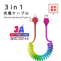 即納 iPhone Android Type-C 対応 ケーブル 充電ケーブル ライトニングケーブル 3in1 急速充電 3A 1m レイ...