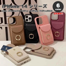 iPhone14シリーズ ショルダー ストラップ付き クロスボディ カード収納 リング付き カバー 全6色 14/14Pro/...