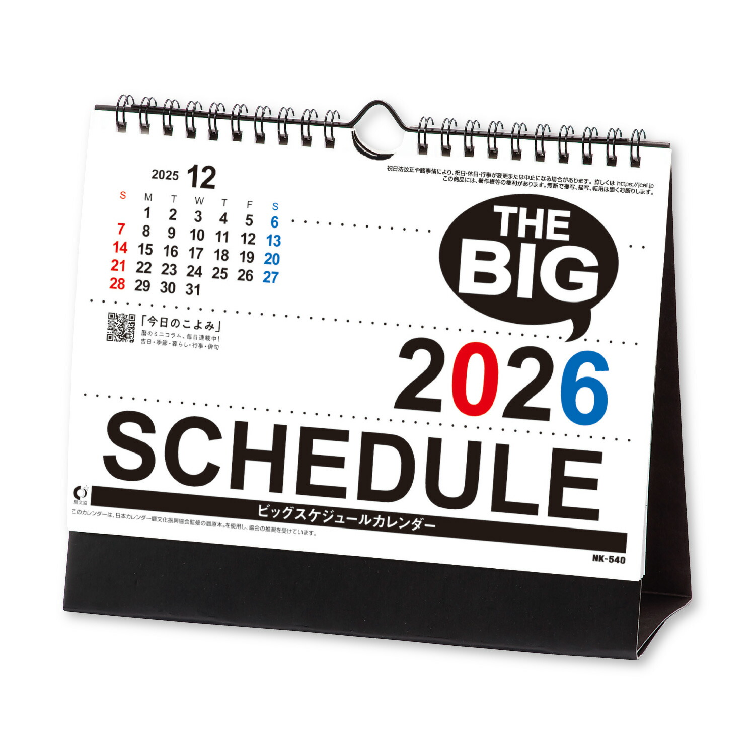 新日本カレンダー 2026年 カレンダー 卓上 ビッグスケジュール 年表付 NK8540