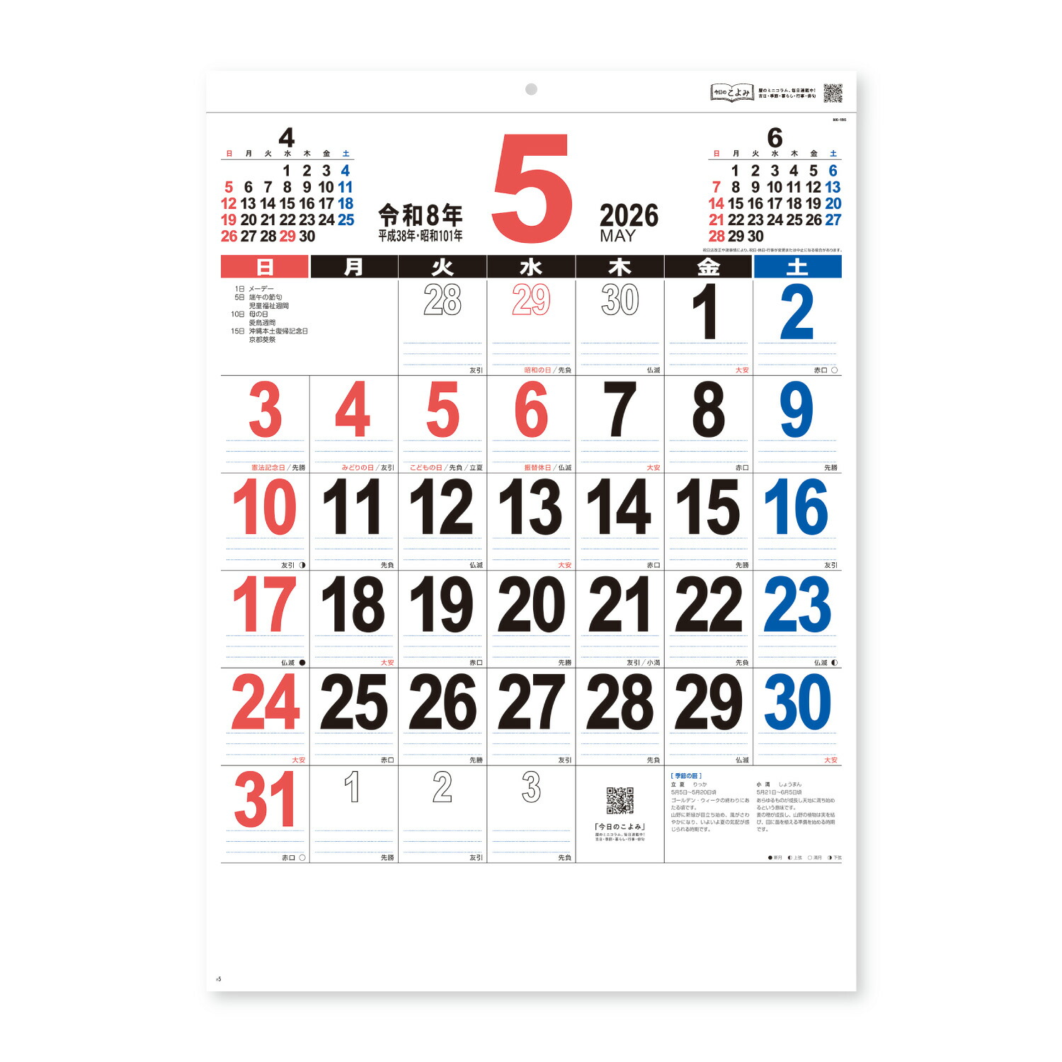 新日本カレンダー 2026年 カレンダー 壁掛け 46 THE・文字 年表付 NK196