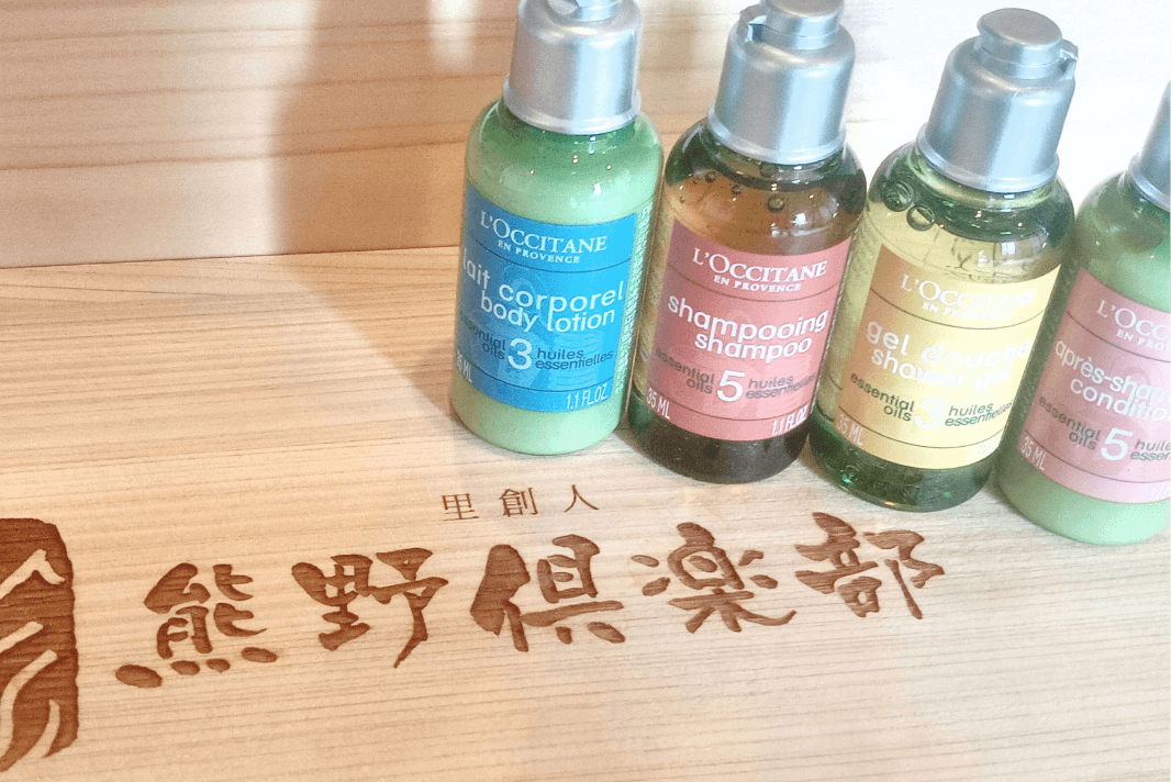 ローズやオレンジ、ラベンダーなどの花や果実、グリーンティ、蜂蜜、オリーブやアーモンドなど100%植物由来の原料を使用した「L’OCCITANE(ロクシタン)」アメニティ(シャンプー・コンディショナー・ボディシャンプー・ボディローション)