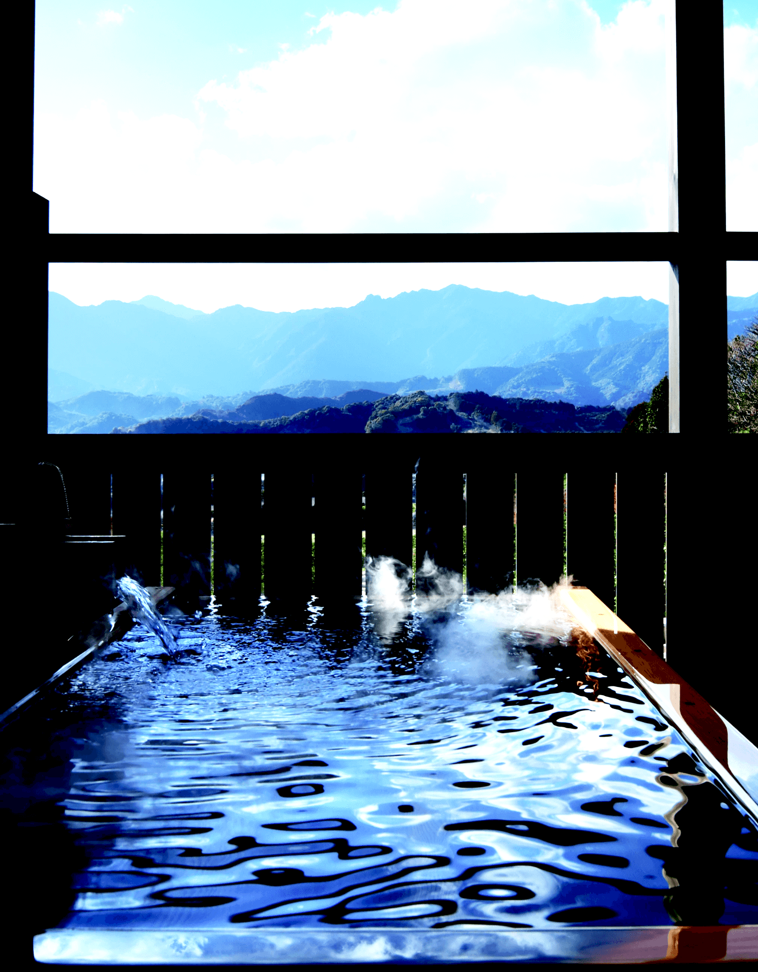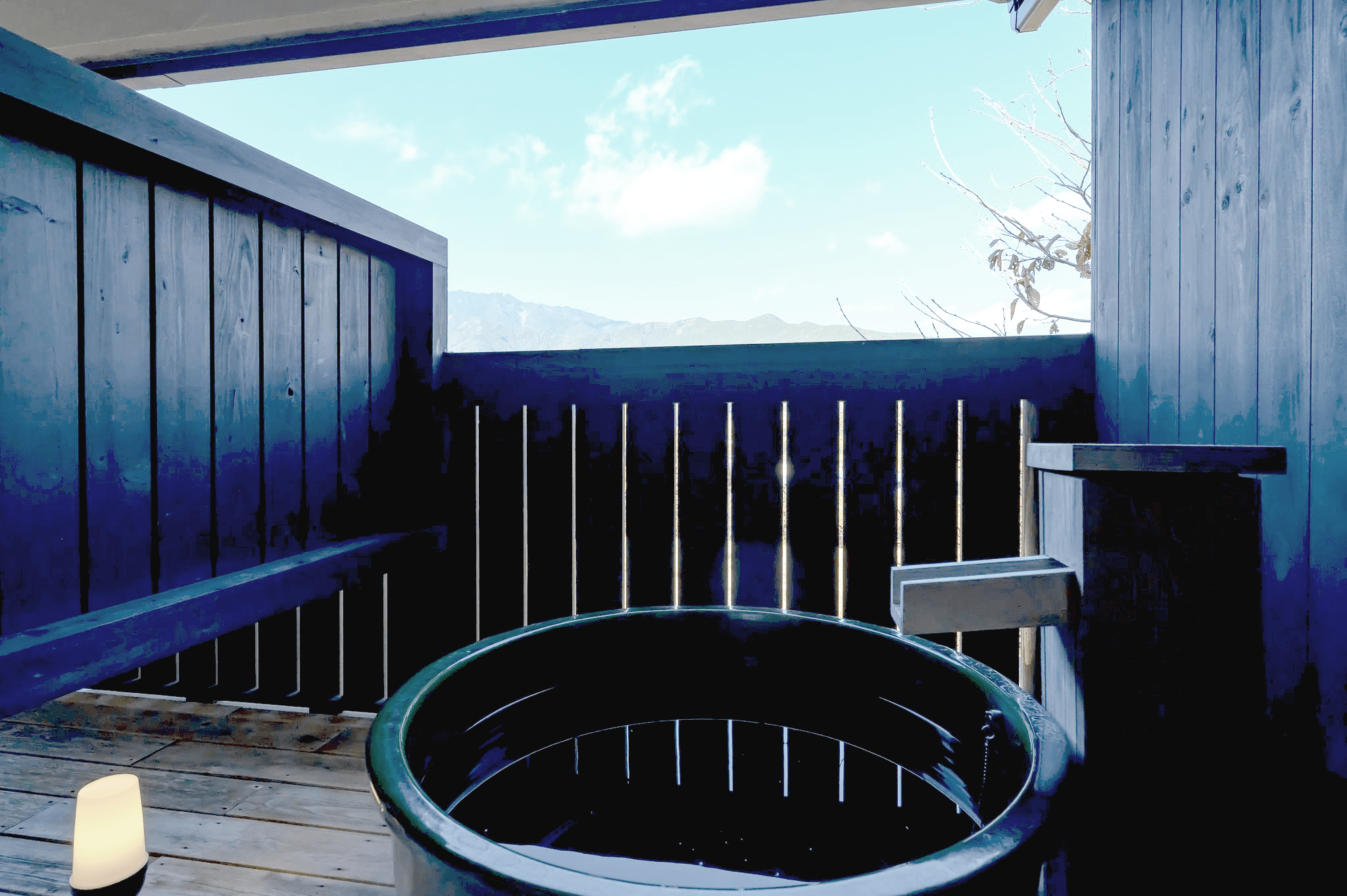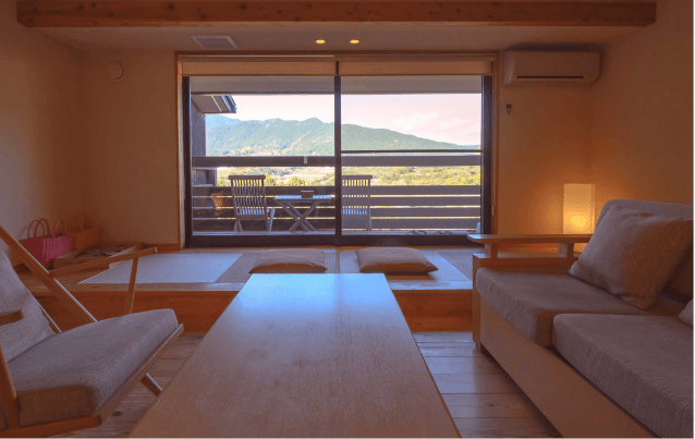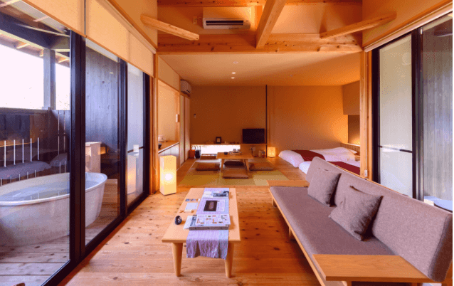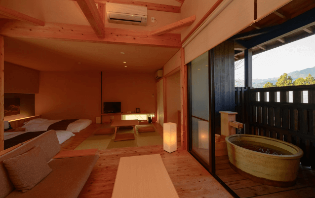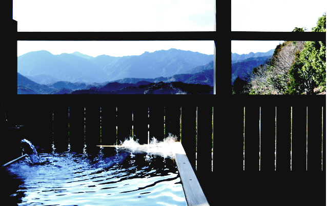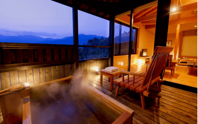 熊野の山々の風景に溶け込む贅沢なひと時。