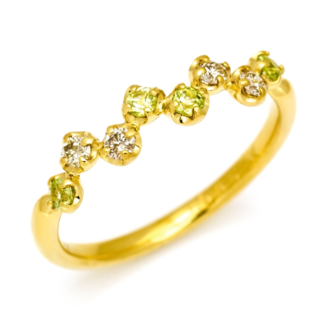 職業柄、いつも私のまわりにはたくさんの宝石があります。数多くの色石を取り扱っておりますが、自分の好きな色が緑ということもあり、柔らかな輝きをもつペリドットへ自然と目がいきます。けして華やかな印象ではないですが、心地よく色づくペリドットは、仕事の合間に一息つく安らぎを与えてくれる宝石なんです。