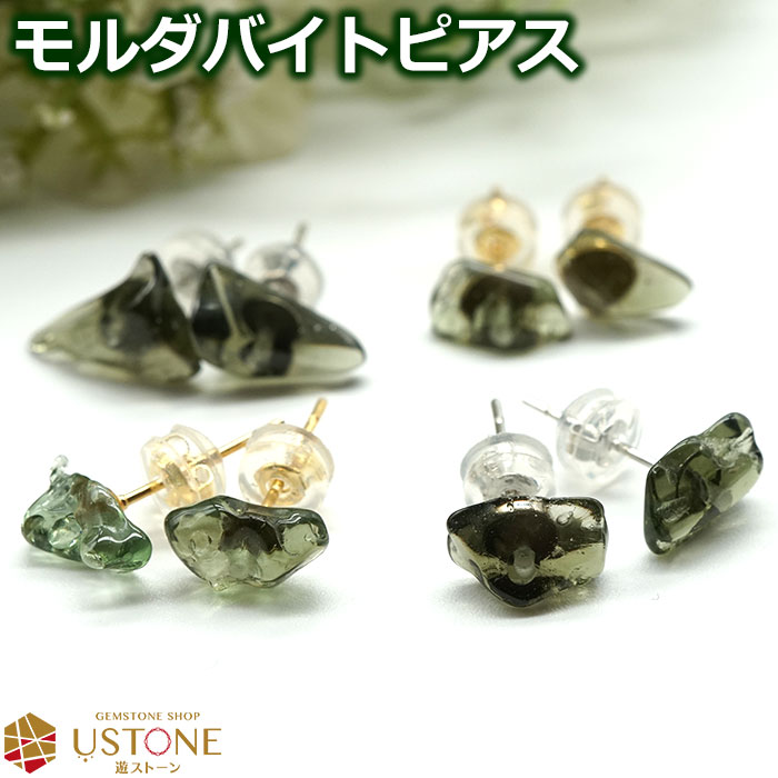モルダバイト ピアス 天然石 1粒ジュエリー 左右ペア パワーストー...