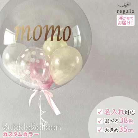 ヘリウムガスを入れてふわふわ浮かせた状態でお届けします♪中のバルーンはなんと38カラーから選べます♪贈り物にはもちろん記念撮影にも★